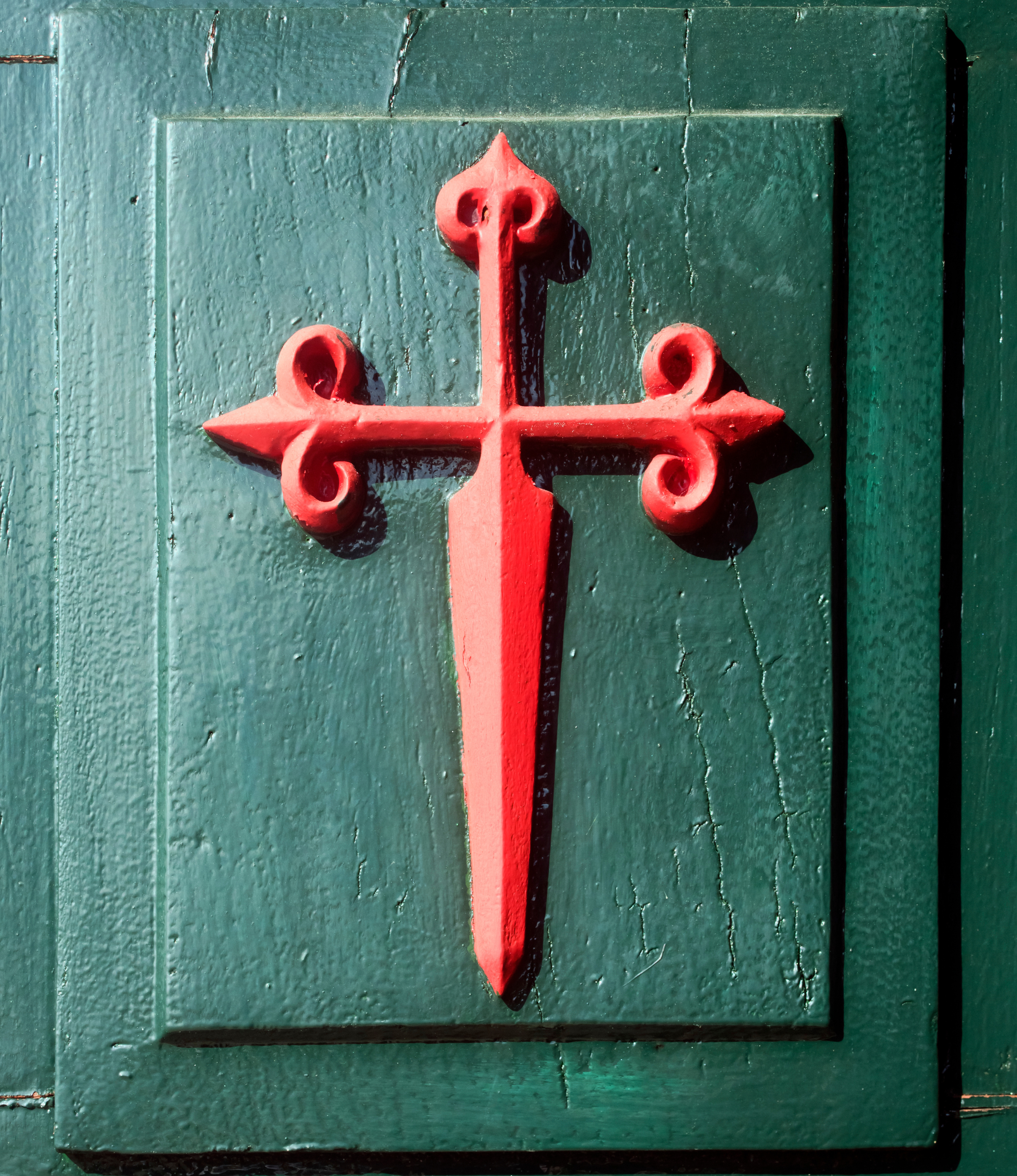 Tan importante como la concha, la cruz de Santiago simboliza el papel de Santiago Apóstol como caballero y soldado. Con su característico diseño de cruz latina en color gules (rojo), representa la sangre derramada por el apóstol en su martirio.